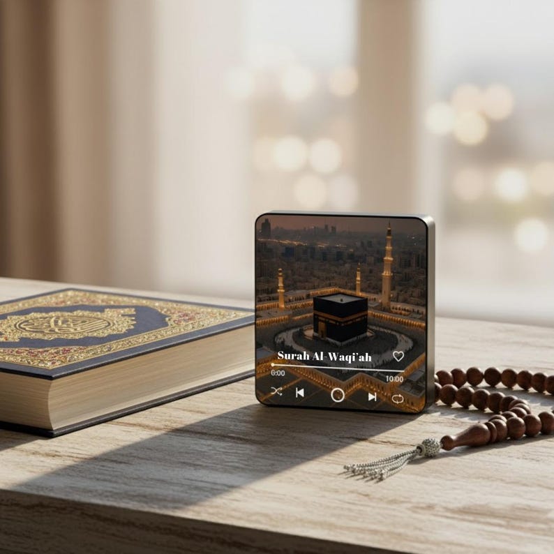 Chaque aimant Coran est préchargé avec la sourate de votre choix avant l’expédition. Vous pouvez la sélectionner facilement lors de votre commande.
